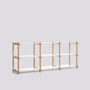 Né comme un présentoir de salon destiné à un usage interne, le potentiel de Woody en tant que système d'étagères pertinent a rapidement été repéré, et Woody a été lancé en cinq versions pour différents usages avec des étagères en métal thermolaqué, que vous pouvez glisser dans le cadre et combiner à votre guise.