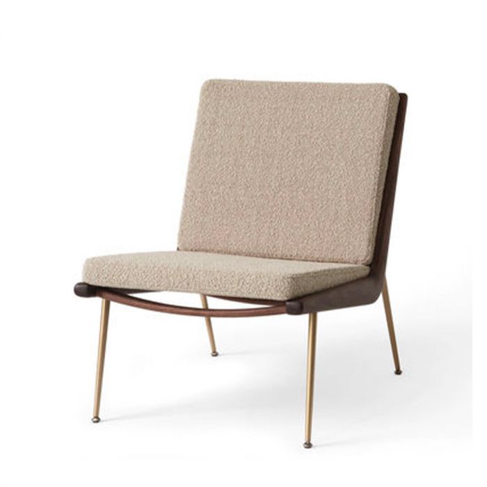 Élégance intemporelle, la chaise longue Boomerang HM1 de &Tradition, imaginée en 1956 par le duo Hvidt & Mølgaard, incarne la pureté et la sobriété du design danois. Son cadre en bois sculpté à la main et ses pieds élancés en laiton reflètent un savoir-faire d'exception, faisant du Boomerang une pièce iconique.
