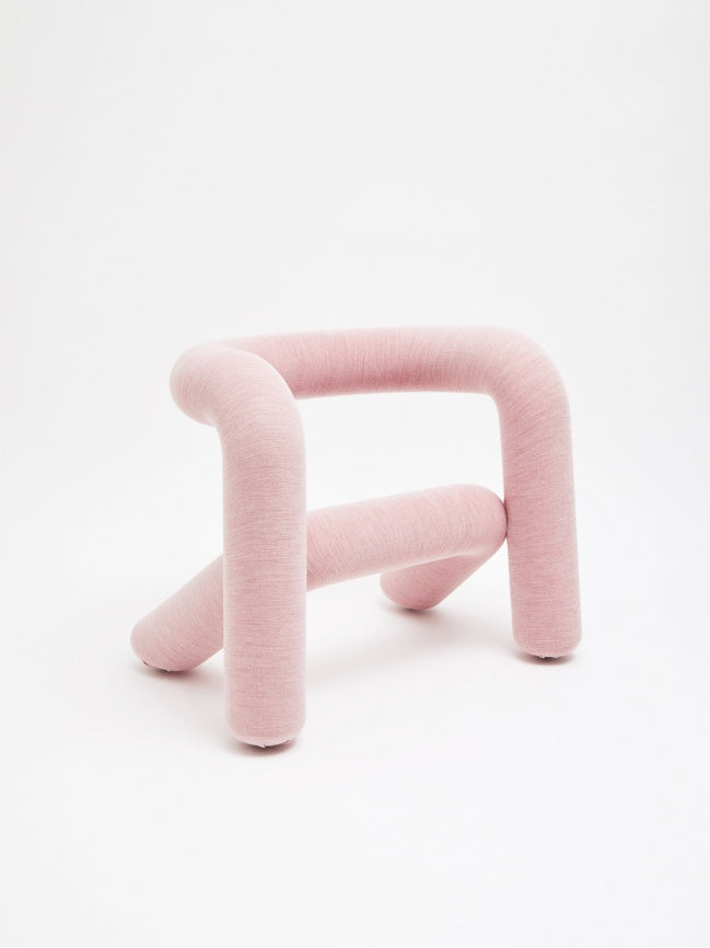 Le fauteuil Extra Bold Mélangé alterne des courbes tendues et moelleuses qui font successivement office de siège, dossier et accoudoir. D’un seul trait, à la manière de la Linea d’Osvaldo Cavandoli, la ligne est épaissie telle la police de caractère à laquelle on applique une graisse. Un style à la fois plein de fantaisie et épuré.
