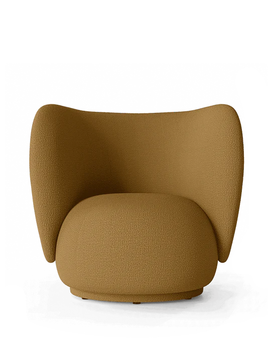 La série Rico accueille des courbes et des volumes dans un design classique défini par des lignes douces et une expression accueillante. En contraste avec la solidité du cadre, le fauteuil est recouvert d'un tissu bouclé intemporel et confortable, tissé avec un fil irrégulier pour obtenir une texture riche et en boucle sur la surface. La nature courbée de la série ajoute une union moderne de confort et d'élégance à n'importe quelle pièce et vous donne l'impression d'être attiré dans son étreinte maternelle.