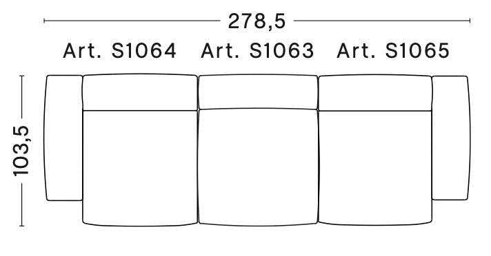 Dimensions : L 278,5 x P 103,5 x H 67 cm, H assise 37 cm