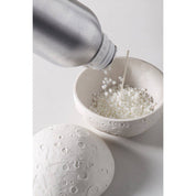Exoplanète en porcelaine en fonte glissante, inspirée du temps passé par Arsham au Jet Propulsion Lab de la NASA (où l’accent est mis sur la recherche de ces 3 500 lunes ou planètes qui tournent autour d’une étoile à l’extérieur de notre système solaire). C'est en fait une bougie en forme déconstruite. Composée de deux moitiés planétaires qui peuvent être stockées dans leur ensemble, la sculpture d’avant-garde exige de son propriétaire qu’il insère une mèche de coton dans la base et qu’il la remplisse d’un contenant de perles de cire de soja parfumées pour utilisation.