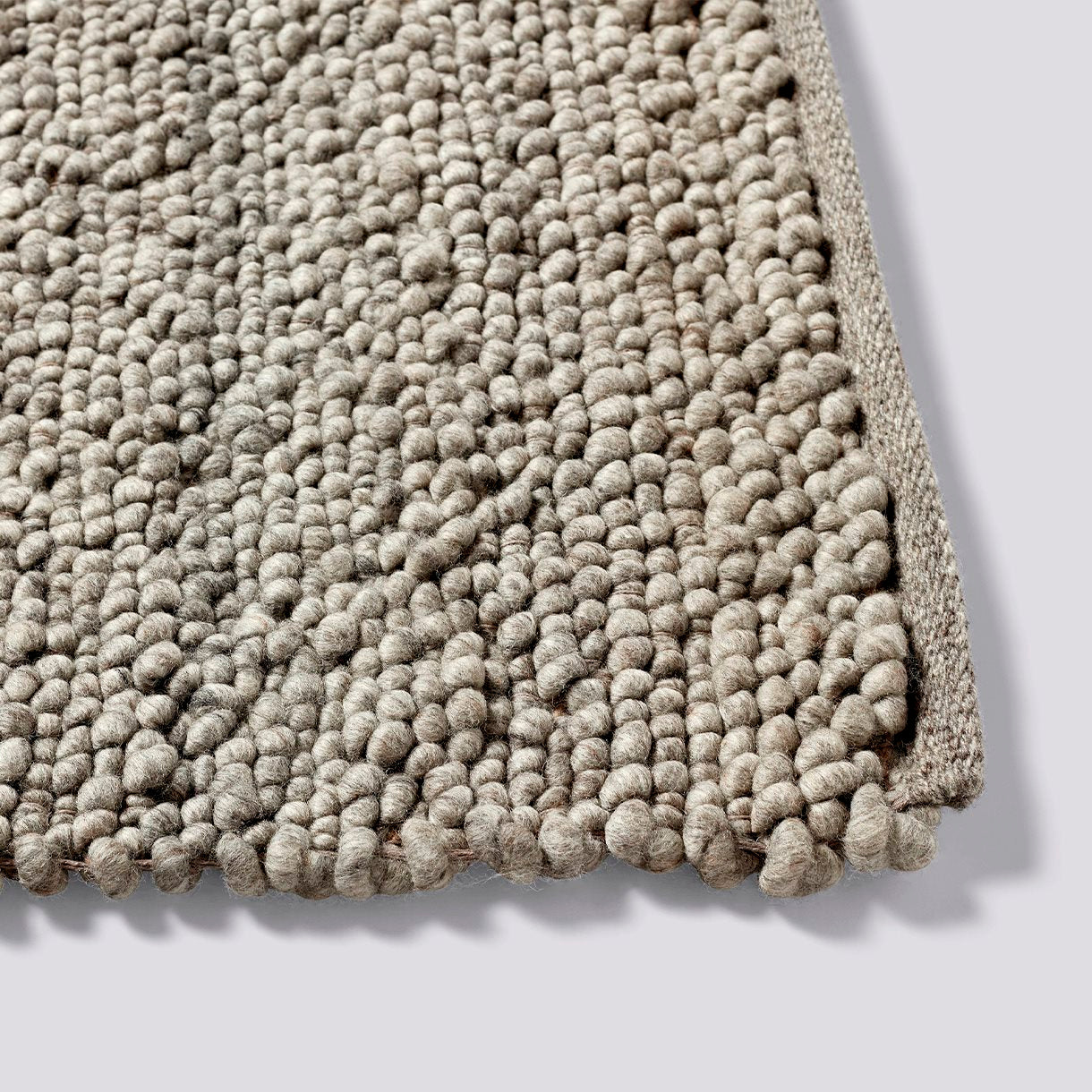 Cette gamme de tapis est fabriquée en Inde. Des grains de laines irréguliers ont utilisés pour créer un aspect organique.