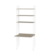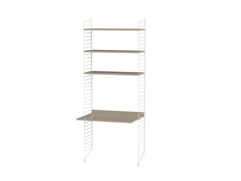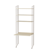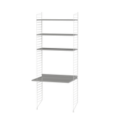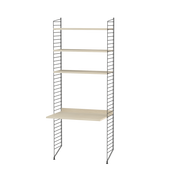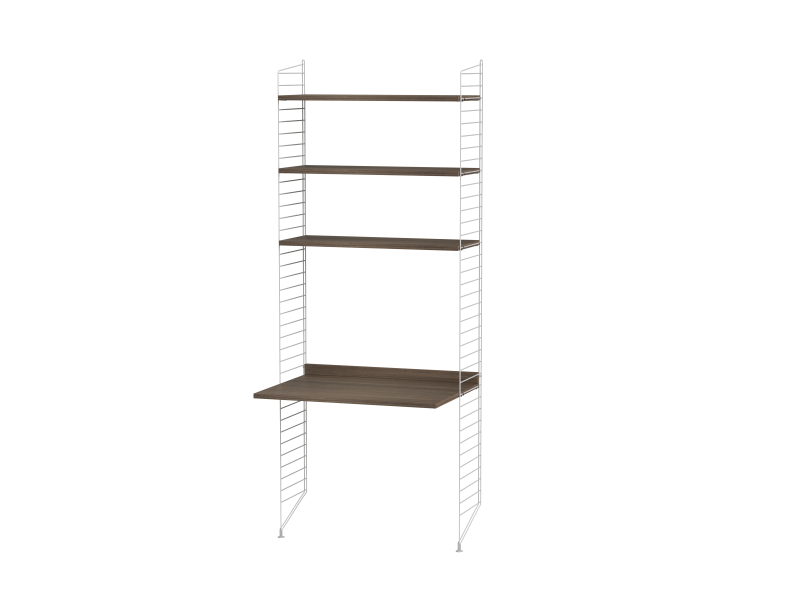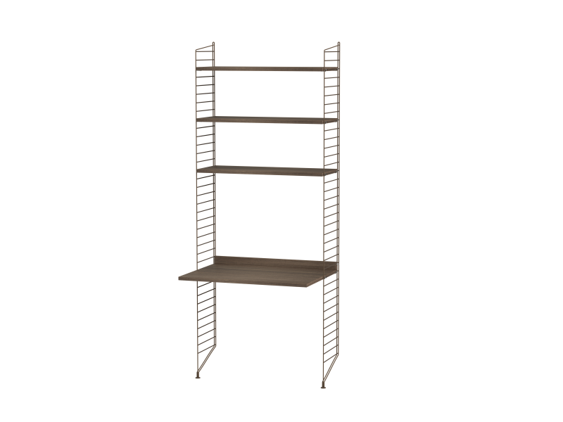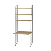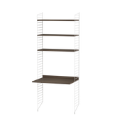 Ici, String propose une solution pour ranger les affaires de vos enfants. Cet espace bureau lui donne un espace de travail. Les étagères hautes permettent de ranger ses crayons, ses livres, feuilles etc. Son design sombre et élément permet de suivre votre enfant dans son évolution.