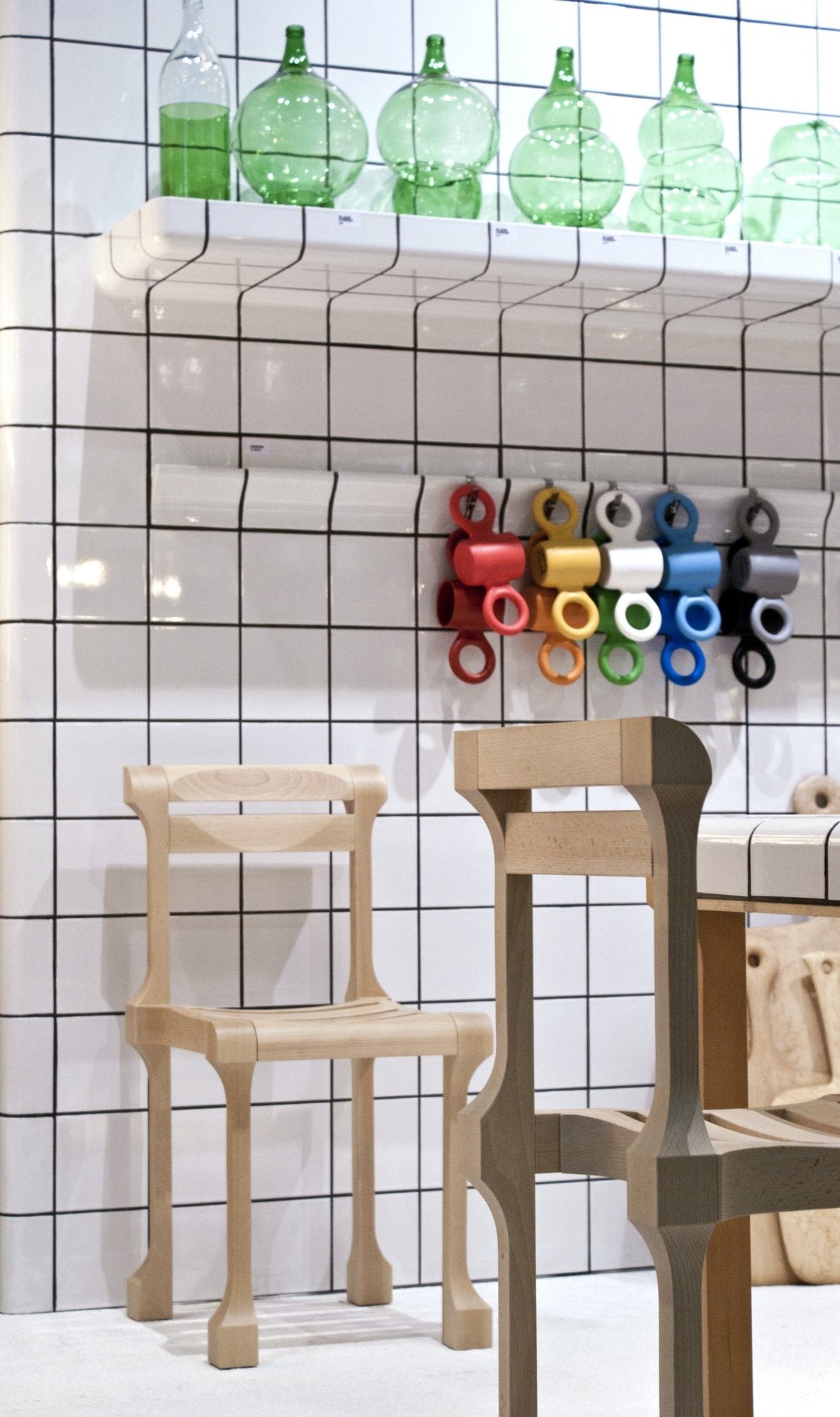 Le designer Klaas Kuiken retravaille des bouteilles en verre verte produites en série en leur insufflant de nouvelles formes. Il les souffle une par une pour produire des pièces uniques. Son projet a commencé avec la question "Y a-t-il des irrégularités dans la production de masse ? » et a trouvé tout son sens avec ces bouteilles industrielles : lors de la découpe du verre, l'épaisseur de la paroi s'est avérée différente à chaque fois. Pour souligner ces différences, il a développé sa propre technique de soufflage du verre, en utilisant un compresseur et un four qu’il a lui même adapté. Lors du processus de soufflage, le verre gonfle davantage aux endroits où l’épaisseur des parois est plus mince et moins aux endroits où il est plus épais, ce qui a pour effet de créer de légère différence entre chaque pièce.