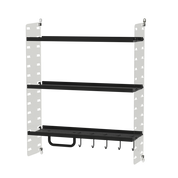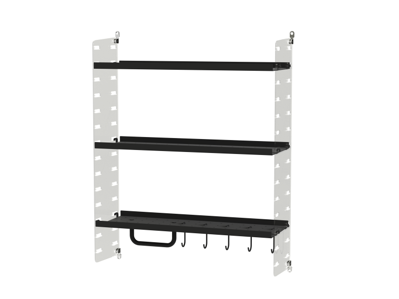 String vous propose ici une étagère créée pour la salle de bain. Elle est idéale pour ranger vos produits de beauté, crème, maquillage. Le rail et les crochets vous permettent de suspendre vos articles de toilette.