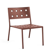 Conçue pour HAY par Ronan et Erwan Bouroullec, la Balcony Lounge Chair est une chaise longue basse et confortable pour l'extérieur. Le design large et carré est adouci par le dossier arrondi, les multiples trous dans l'assise et le dossier renforçant la construction, tout en créant une expression distincte. Fabriqué en acier thermolaqué avec un apprêt pour l'extérieur pour une résilience et une durabilité optimales, Balcony est disponible dans un certain nombre d'options de couleurs différentes. La conception empilable de la chaise signifie qu'elle est bien adaptée à tous les types d'espaces, des petits balcons et terrasses aux jardins et autres espaces extérieurs plus grands.