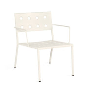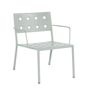 Conçu pour HAY par Ronan et Erwan Bouroullec, le Balcony Lounge Armchair est un fauteuil de salon bas et confortable avec accoudoirs pour l'extérieur. Le design large et carré est adouci par le dossier arrondi et les accoudoirs minces, les multiples trous dans le siège et le dossier renforçant la construction, tout en créant une expression distincte. Fabriquée en acier thermolaqué avec un apprêt pour l'extérieur pour une résistance et une durabilité optimales, Balcony est disponible dans un certain nombre d'options de couleurs différentes. La conception empilable de la chaise signifie qu'elle est bien adaptée à tous les types d'espaces, des petits balcons et terrasses aux jardins et autres espaces extérieurs plus grands.