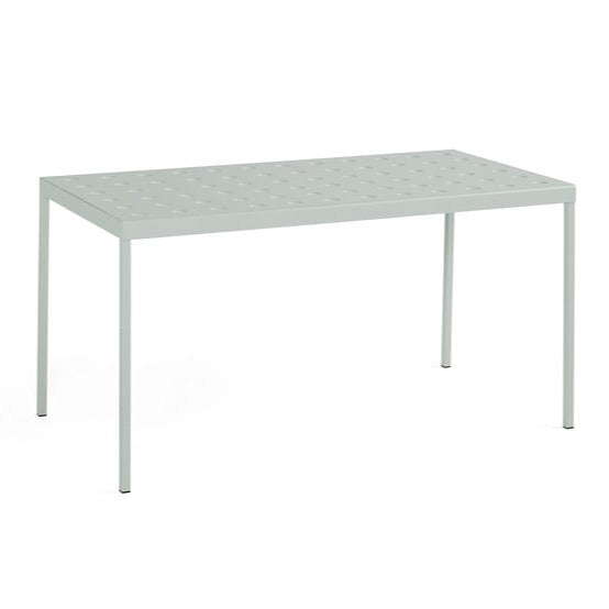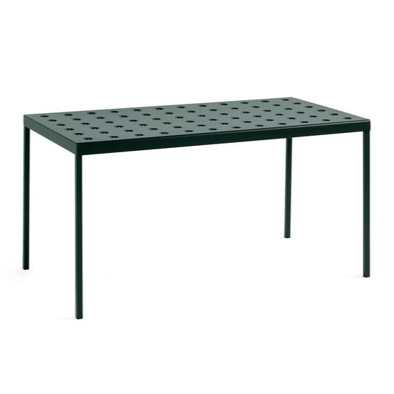 Conçue pour HAY par Ronan et Erwan Bouroullec, la Balcony Table est une élégante table à manger pour l'extérieur. Le design rectangulaire simple est adouci par des pieds minces, les multiples trous sur la surface de la table renforçant la construction, tout en créant une expression distincte. Fabriquée en acier thermolaqué avec un apprêt pour l'extérieur pour une résistance et une durabilité optimales, Balcony est disponible dans un certain nombre de couleurs et de tailles différentes, ce qui en fait une table polyvalente qui peut être utilisée dans tous les types d'espaces, des petits balcons et terrasses aux jardins et autres espaces extérieurs plus grands.