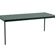 Conçue pour HAY par Ronan et Erwan Bouroullec, la Balcony Table est une élégante table à manger pour l'extérieur. Le design rectangulaire simple est adouci par des pieds minces, les multiples trous sur la surface de la table renforçant la construction, tout en créant une expression distincte. Fabriquée en acier thermolaqué avec un apprêt pour l'extérieur pour une résistance et une durabilité optimales, Balcony est disponible dans un certain nombre de couleurs et de tailles différentes, ce qui en fait une table polyvalente qui peut être utilisée dans tous les types d'espaces, des petits balcons et terrasses aux jardins et autres espaces extérieurs plus grands.