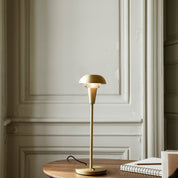 La lampe de table Tiny est une source de lumière fonctionnelle et décorative dans n'importe quelle pièce. Grâce à sa petite taille fine, elle peut être placée sans effort sur le rebord de votre fenêtre ou sur votre bureau pour un éclairage supplémentaire. Inspirée de l'Art déco industriel, elle respire la simplicité tant dans son expression que dans sa construction métallique. La tête basculante très pratique vous permet d'incliner l'abat-jour pour créer un aspect différent de la lampe, ainsi que pour l'adapter à l'atmosphère de la pièce. Jouant sur les proportions, l'abat-jour minuscule associé à la base mince donne à la lampe de table Tiny son caractère charismatique et sa personnalité.