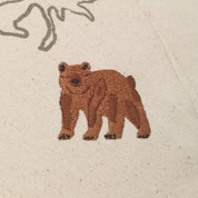 Il est brodé de motifs d’animaux représentatifs de certaines régions de la planète.