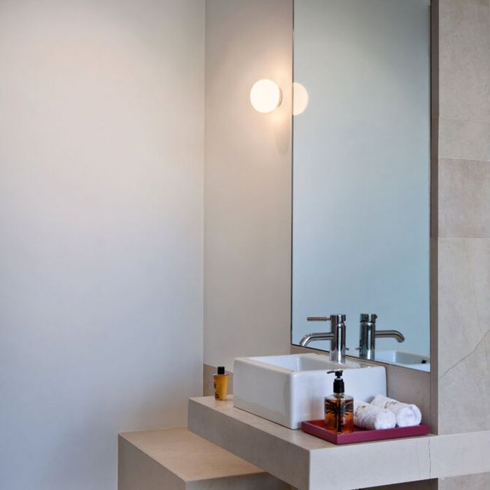 Créée en 2002 par le célèbre designer Anglais Jasper Morrison pour Flos, l'applique Mini Glo-Ball C/W fait partie d'une collection assez vaste, car la Glo-Ball existe en plusieurs modèles de lampes de table, mais aussi en lampadaire, en suspension… Élégante, pure et à la fois graphique, l'applique Mini Glo-Ball C/W se compose d’un diffuseur sphérique en verre opalin gainé, soufflé.