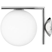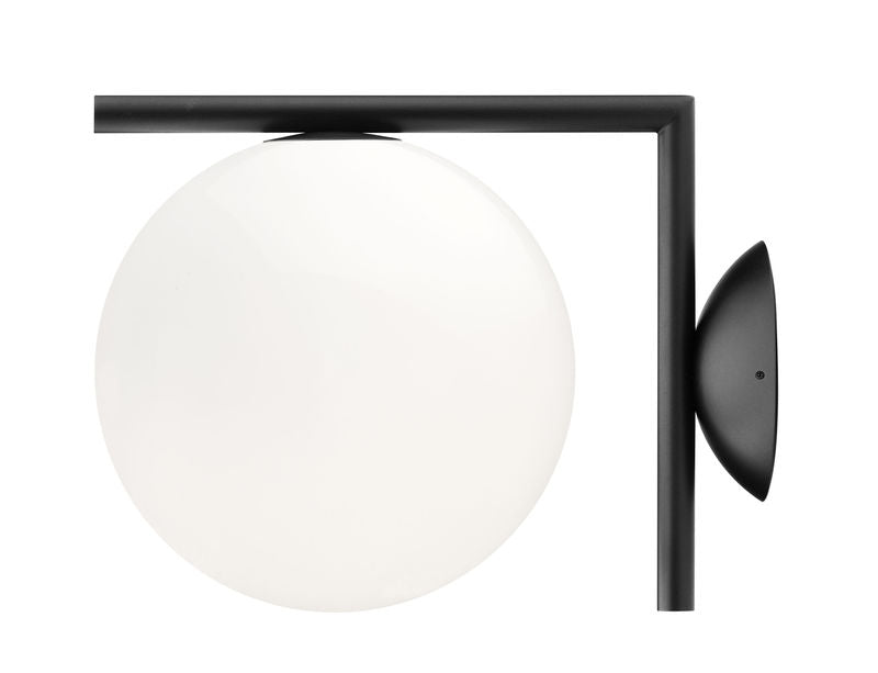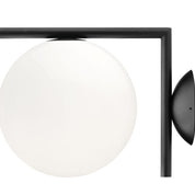 L'applique IC Lights C/W de Flos incarne l'esprit de l'Art Déco avec une raffinement minimaliste. Cette création se compose d'une sphère en verre soufflé, équilibrée avec finesse sur une structure en métal aux angles aigus. Cette construction lumineuse est à la fois sculpturale et sophistiquée, explorant la notion d'équilibre.