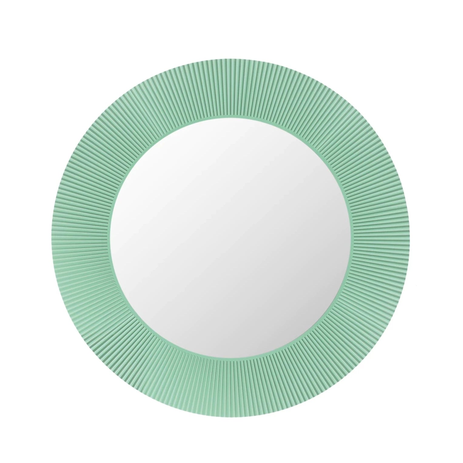 Miroir rond à cadre en transparent ou coloré, effet plissé.