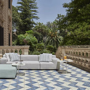 • Matériau : Assise et le dossier sont en polyuréthane, recouverts d'un tissu spécial "New Dyed Fiber" pour l'extérieur. Le revêtement est amovible.