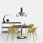 La table Thierry ronde XXL joue sur les contrastes de couleurs et les proportions, la collection séduit par son esprit raffiné et convivial. Les plateaux en verre coloré – déclinés en nuances de gris, bordeaux et blanc – évoquent l’éclat de pierres précieuses, tandis que les pieds en métal apportent une touche de modernité. Une gamme de tables polyvalentes, idéales pour habiller tous les intérieurs avec audace et élégance.