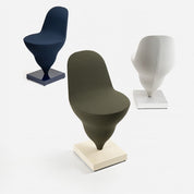 La chaise Gelato, conçue par Jean-Baptiste Fastrez, incarne une approche révolutionnaire dans le design de chaise. S'éloignant de la tradition de réduction minimaliste, Gelato met en avant une expression formelle simplifiée, permettant une liberté de conception sans précédent. Cette chaise, privée des signes et caractéristiques habituelles d'une chaise, offre une nouvelle perspective, remettant radicalement en question notre perception des meubles. La silhouette fluide et élancée de la Gelato, combinée à une présence sculpturale forte, défie les normes établies, se fixant solidement dans un piédestal au design géométrique épuré.