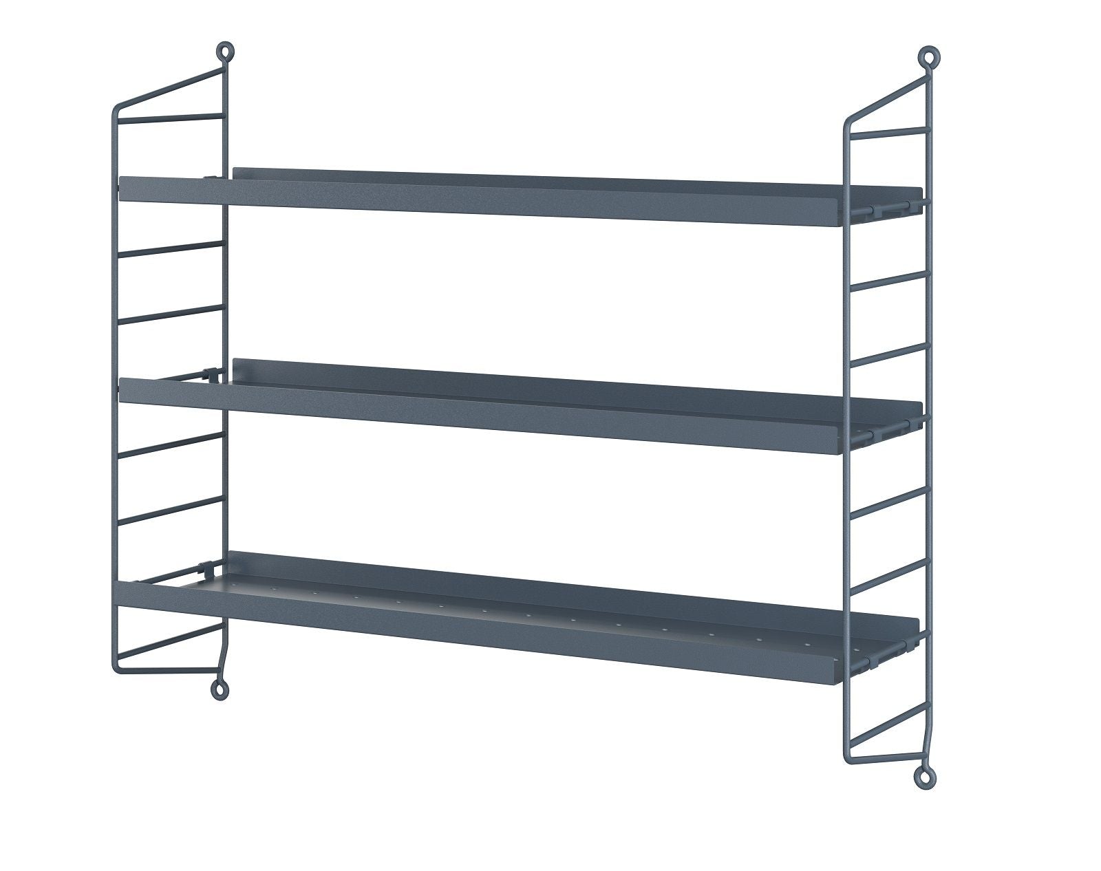String® Pocket metal est vendu comme une étagère complète, mais est tout aussi flexible que String® System. Libérez votre créativité et votre personnalité en combinant deux ou trois étagères String® Pocket pour en créer une plus grande. Mélangez et assortissez les différentes couleurs en fonction de votre style et de vos préférences. Les étagères métalliques perforées de 2 cm à bord bas sont compatibles avec les crochets et les barres (30 et 58 cm), ce qui augmente les possibilités de rangement. String® Pocket metal est commercialisé en tant qu'unité complète composée de deux montants en maille de 50 cm de haut et de trois étagères métalliques de 58 cm de large et 15 cm de profondeur.