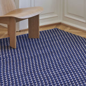 Ce tapis est tissé à la main en Inde à partir d'un mélange de laine et de coton de Nouvelle-Zélande.