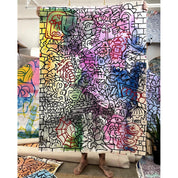 He made his debut in the 90s within the Parisian graffiti group UVTPK (Ultra Violent The Psychopath Killer), and became known for his unusual graffiti thanks to his own style. Fuzi is in fact at the origin of the Ignorant Style , which results in a false naive style and minimalist designs. He asserted himself in this direction by deciding in the 2000s to become a tattoo artist and illustrator and subsequently founded his brand Ignorant People By Fuzi.
