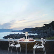 Master chairs are designed to be both functional and aesthetically pleasing. Their unique design makes them standout pieces, ideal for those looking to add a modern, versatile design element to their space. The construction in recycled thermoplastic technopolymer with mineral filler and soft touch treatment underlines Kartell's commitment to sustainable and responsible design.