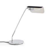 To create the Apex series, British designer John Tree was inspired by the classic 'banker's lamp' found in many libraries. He reinterpreted this archetypal reference with a contemporary and colorful sensitivity. Apex lamps feature a roof-shaped folded steel shade on a thin chrome base. The color is a central element of the design which contrasts with the chrome base.