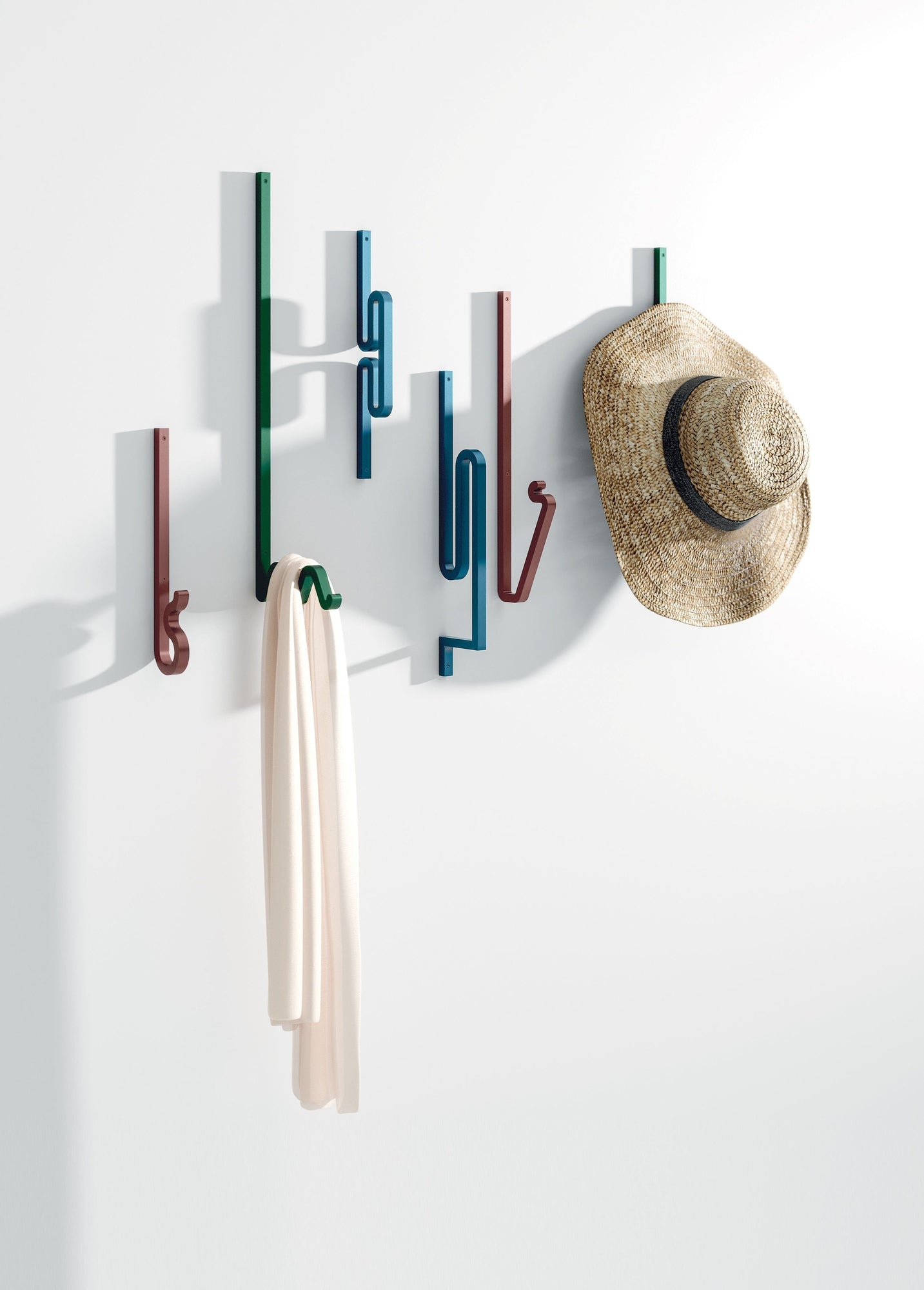 Three sets of 2 Zag coat hooks are available in different colors. You can combine them into an infinite number of compositions.