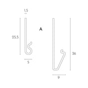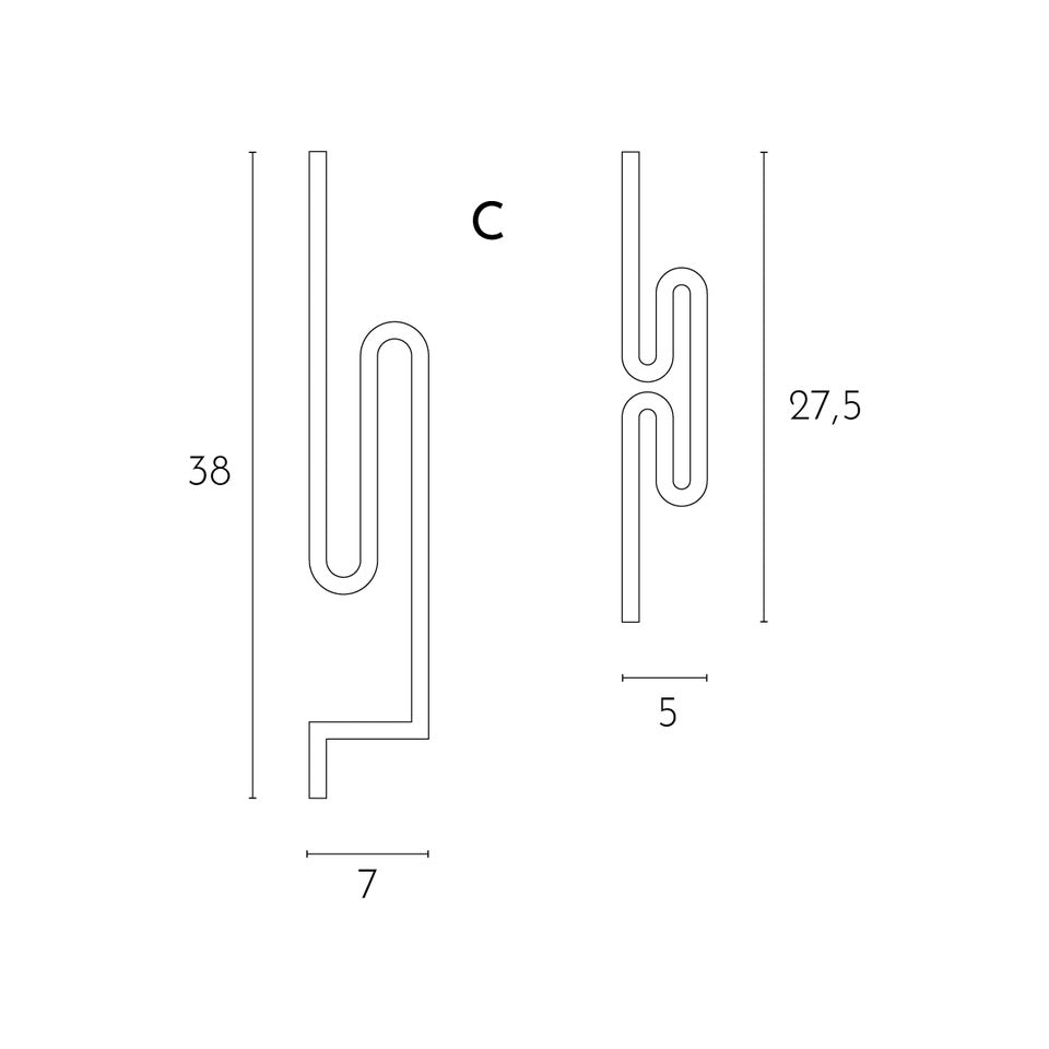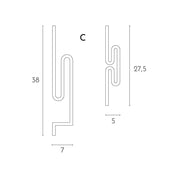Zag is a family of coat hooks. Their varied shapes are inspired by barrettes, pins or twisted metal rods combined to create a graphic composition. Each shape is like an imaginary letter that offers a different way to hang your clothes, bag or other accessory.