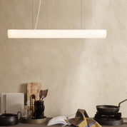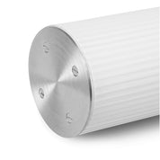 The Vuelta pendant features cylindrical translucent glass with a corrugated surface and brushed metal finishes. With an LED light source that emits soft, diffused light, the Vuelta pendant light comes with an adjustable dimmer remote control for ultimate ambiance control.