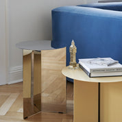The Slit High table by Hay is a remarkable illustration of modern Danish design, drawing inspiration from the delicate art of origami. This side table, made of polished steel, features a sophisticated geometric design. The thin frame, which appears folded under the top, creates a sculptural silhouette reminiscent of Japanese origami. Available in a range of shapes, sizes and finishes, the Slit table is a versatile choice for various environments, whether private or public. Its silver finish adds a touch of contemporary refinement to any space.