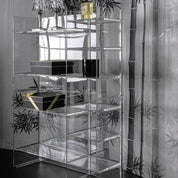 This multiform and multifunctional system of stackable and modular shelves allows you to create different geometric and chromatic compositions. A true furnishing complement, it can fulfill the dual function of storage furniture and separation furniture.