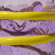 The Pompitu I vase, created by Gaetano Pesce for the 1995 Fish Design collection at Corsi Design, embodies a vibrant and distinctive lifestyle. This cast resin vase reveals Pesce's ingenious spirit with its vibrant colors and organic shapes, adding vitality and dynamism to any space. The Pompitu I is characterized by a translucent layer of light ruby ​​enveloped by a bright fuchsia-colored rope that elegantly wraps around the vase.