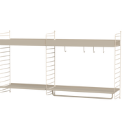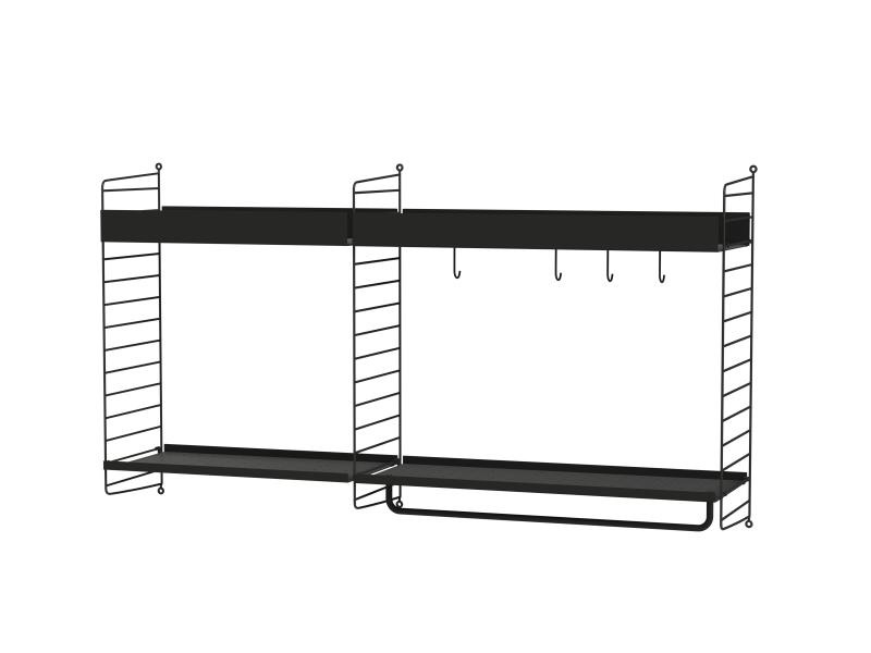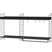 Here, String offers a solution for tidying up your kitchen, the hooks allow you to store your utensils. the shelves allow you to arrange your spices, condiments, glasses and all kinds of jars.