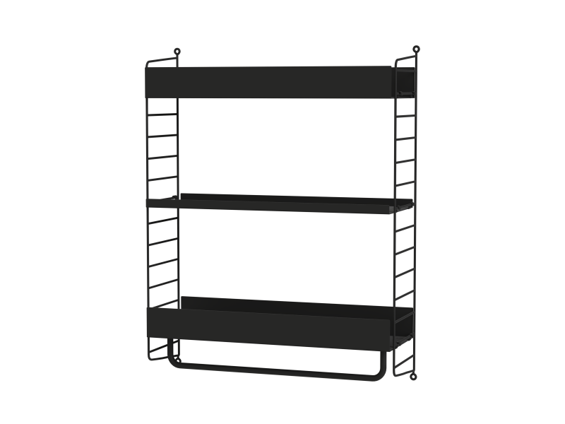 Here, String offers a solution for tidying up your kitchen, the shelves allow you to arrange your spices, condiments, glasses and all kinds of jars. It is dark and elegant, so it can fit into any interior, from the most minimalist to the most modern.