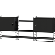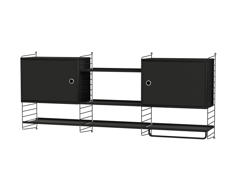 Here, String offers a solution for tidying up your kitchen, the shelves allow you to arrange your containers and jars. The boxes allow you to store some of the utensils out of sight for a tidy effect. It is dark and elegant, so it can fit into any interior, from the most minimalist to the most modern.