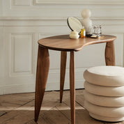 Made from solid FSC™ certified European walnut, the Feve Desk has an organic and delicate expression. In reference to the distinctive shape, its name comes from the French word Fève, bean. The legs are sculpted in stretched elliptical shapes that highlight the sleek, feminine silhouette of the desk and balance the design. The Feve Desk requires little space and can be used as a desk, entrance console or makeup table.