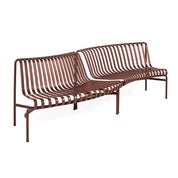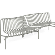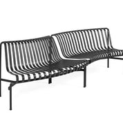 Designed by the French duo Ronan and Erwan Bouroullec, the Palissade Park Dining Bench is a modular bench designed for outdoor use. The curved frame comes in two variations, which are designed to curve in two different directions, allowing the benches to face inwards, outwards or a combination of both. By connecting a minimum of two benches, it is possible to create custom seating in layouts such as circles, waves and arcs. This combination includes one bench facing inwards and one facing outwards, providing a starting point for customizing different layouts.