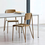 The fruit of eight years of work, Daniel Rybakken's Petit Standard is a study of precision and thoughtful detail. With the aim of creating a highly stackable chair, where the stacking features would truly enhance the design of the chair, Petit Standard merges elegance and functionality into an iconic design. Using die-cast aluminum and steel tubes that fit together into a three-dimensional triangle, the lightweight frame features a distinctive geometric silhouette, offset by the warmth and natural quality of the seat and back in oak wood. The high back and curved seat ensure great comfort, while the rigid tubes optimize the chair's strength and stackability, making it ideal for corporate environments, educational establishments and private places
