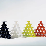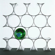 Infinity is a modular, colorful and curvilinear bottle rack. The elements that form the bottle rack can be attached together to form an indefinite number of rings inside which the bottles can be stored.