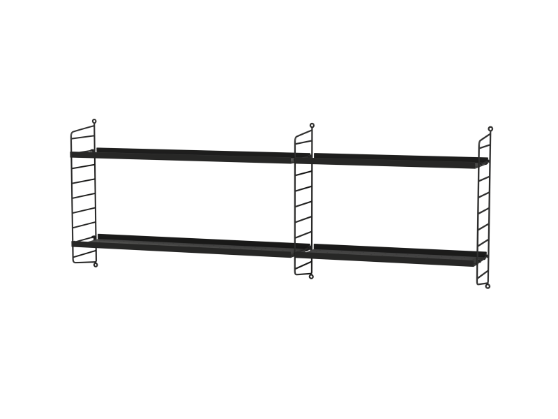 Here, String offers a solution for storing your children's belongings. It allows you to easily store all your children's stuffed animals, figurines and dolls. As they grow, they can keep it to store their decorative items, books, etc. This is enabled by its dark and elegant design, which fits perfectly into any interior.