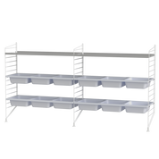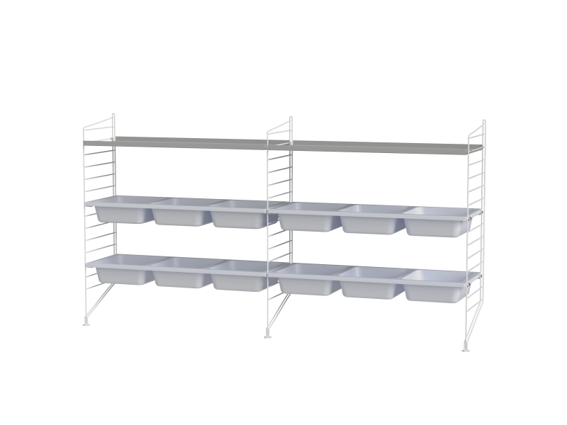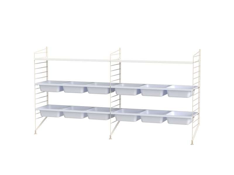 Here, String offers a solution for storing your children's belongings. It allows you to easily store all your children's stuffed animals, figurines and dolls. The compartmentalized bins allow you to store and organize your toys.