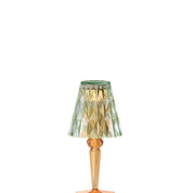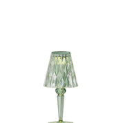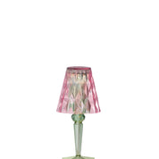 Battery is a transparent lamp with a small shade. The big news is that it is 100% rechargeable by plugging it into a simple electrical outlet. Its autonomy can reach 8 hours.