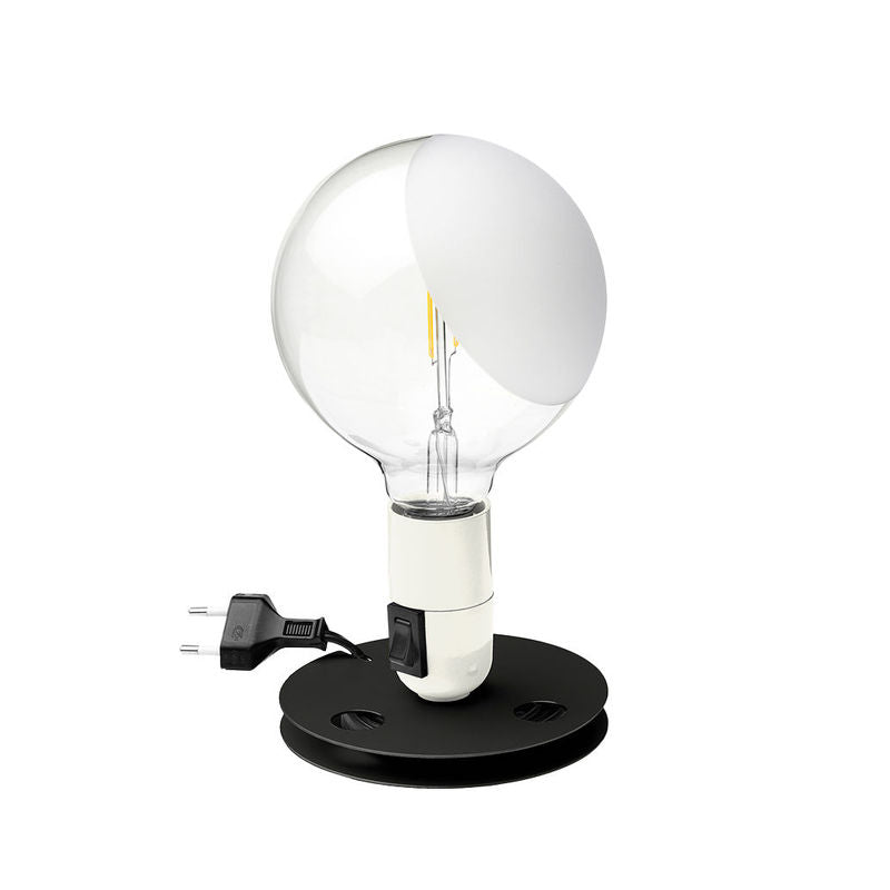 The "Lampadina" table lamp is one of the iconic lamps designed by Achille Castiglioni (1918-2002), great master of 20th century Italian design. Lampadina was designed for the opening of the Flos showroom in Turin in 1972. Symbol of the 70s, this industrial design luminaire takes its name (bulb in Italian) from its characteristic essential spherical shape: a mixture of simplicity, irony and lightness, combined with functional details.