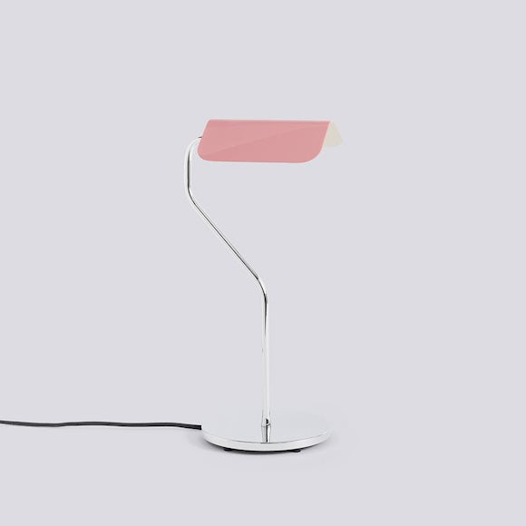 To create the Apex series, British designer John Tree was inspired by the classic 'banker's lamp' found in many libraries. He reinterpreted this archetypal reference with a contemporary and colorful sensitivity. Apex lamps feature a roof-shaped folded steel shade on a thin chrome base. The color is a central element of the design which contrasts with the chrome base.