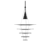 The Enigma 545 pendant light is distinguished by its floating lampshades supported by fine wires, creating an effect of lightness and transparency. Available in gray and black, it provides indirect anti-glare lighting and a soothing visual effect to any interior space.
