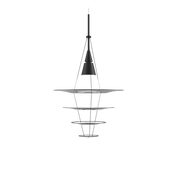 The Enigma 425 was designed by Japanese designer Shoichi Uchiyama in 2003. Uchiyama had presented Louis Poulsen with a design idea deconstructing the concept of the traditional chandelier into thin layers of concentric circles. This concept incorporated floating lampshades held by very fine wires, expressing both transparency and lightness. The name “enigma” referred to the fact that the lampshades seem to hover when seen from a distance, illuminated. It turned out that this idea was entirely in line with Louis Poulsen's product philosophy and presented itself as a reinterpretation of the lampshade assembly: Japanese grace combined with Scandinavian simplicity. In 2018, the original aluminum version was supplemented with a black edition, expanding the decorative possibilities of the design and creating a serene visual and atmospheric effect, as it shapes and channels light.
