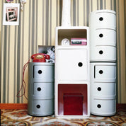 The modular elements have been designed to meet different needs and to fit perfectly into every room of the house. The conceptual solution of the Componibili modular system is based on the vertical, simple and solid superposition of the different pieces which simply fit together to create practical storage.