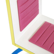 Le fauteuil Riviera, conçu en 1981 par Michele De Lucchi, est une pièce emblématique du groupe Memphis Milano. Réalisé en bois avec des pieds en métal peint, ce fauteuil est surmonté d'un rembourrage rose en tissu, offrant une touche de couleur vibrante. Cette pièce est le témoignage de l'approche postmoderne du design de Memphis, mêlant couleurs audacieuses, formes innovantes et associations inattendues de matériaux.