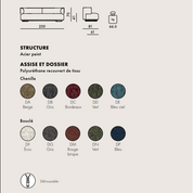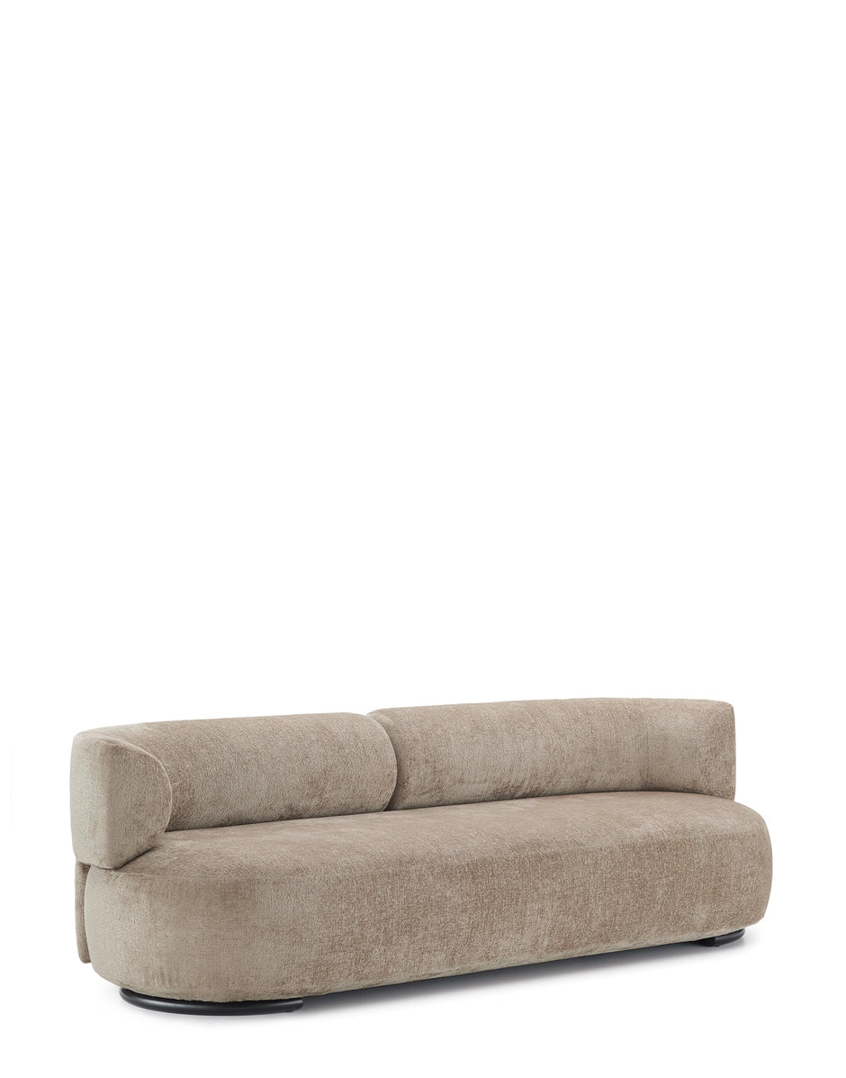 The two sofas are joined by an armchair which transforms into a round ottoman by simply removing the backrest. Specialty textile coverings cover a wide range, such as warm velvet surfaces, looped fabrics and more plain coverings all having in common a unique texture certified for the hospitality and public spaces sector.